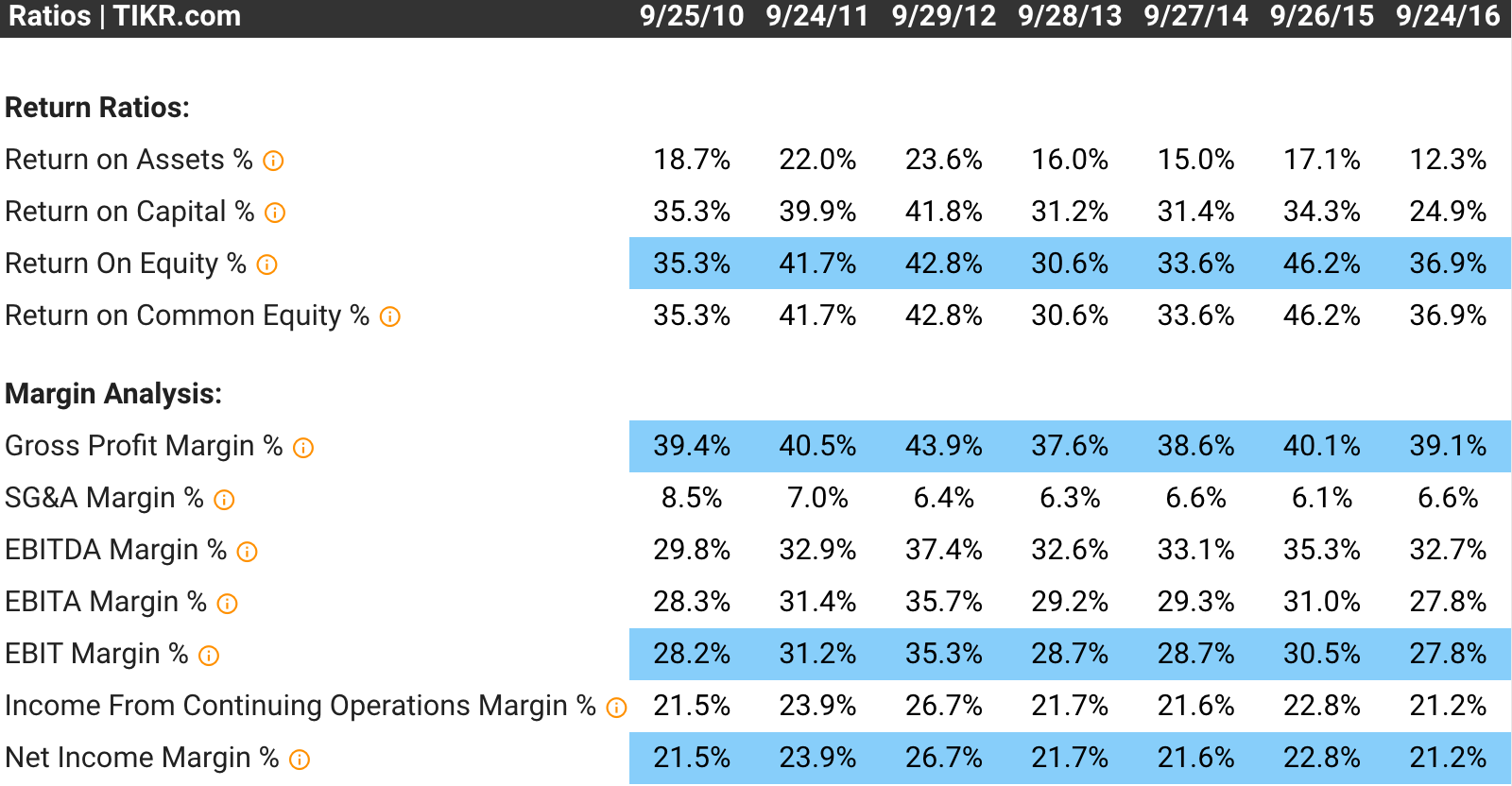 Answer: The valuation exercise above has adequately demonstrated how an investor in AAPL in 2016 could have estimated a LT total shareholder return of 10% quite conservatively.