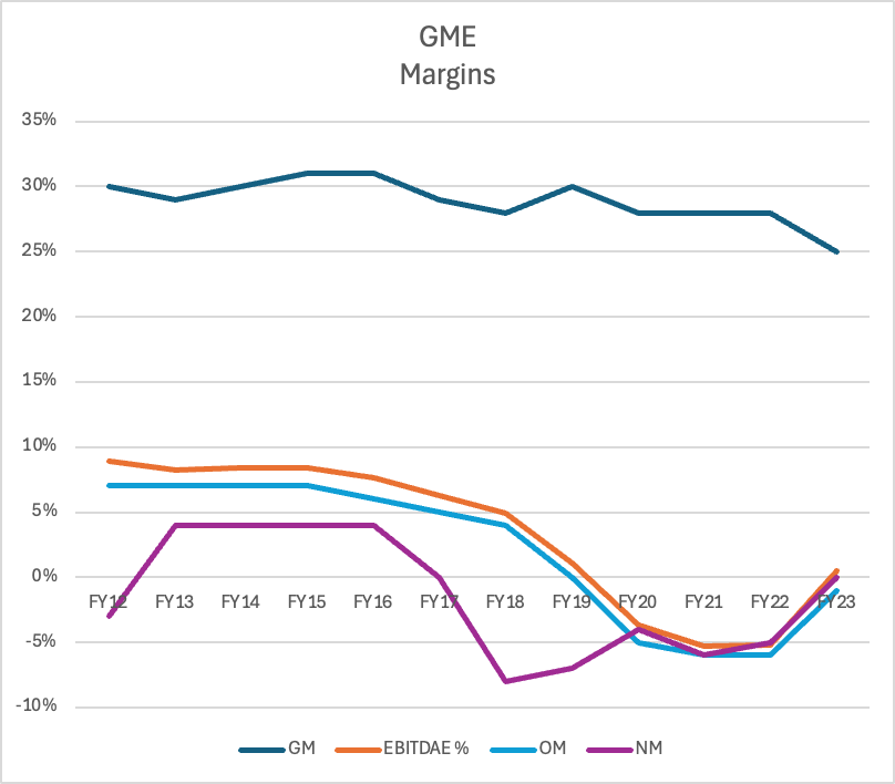 Unfortunately, GME doesn’t disclose the breakdown of their SG&A expenses on a more granular level, so we can’t determine whether it was for instance, Sales & Marketing expenses or Employee salaries which had a bigger impact on their earnings/losses.